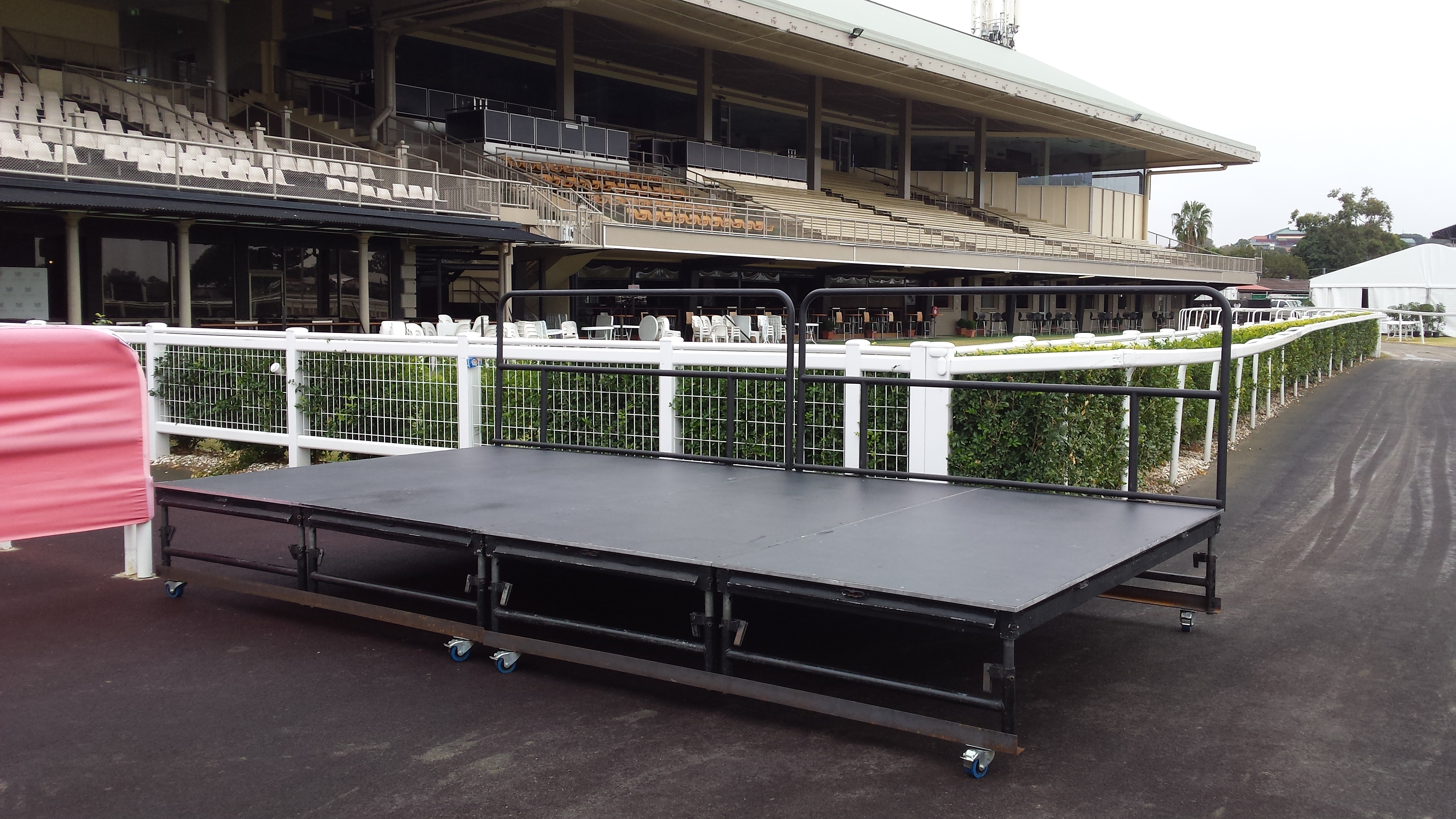 Our rolling risers come in 1.22×2.44 or 2.44×2.44 sections, and can be joined together to make larger sections, and built in many heights. Our rollers are strong but have easily manoeuvrable wheels making it a breeze to push your stage riser or presentation stage into position.